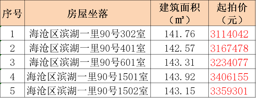 一、厦门市海沧区滨湖一里90号302、401、601、1501、1502室共5套住宅(分开转让)(详见文章底部“标的清单”)。